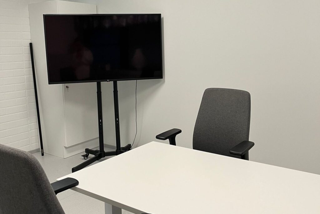 Uudistunut Sumplimo on neljän hengen pieni neuvotteluhuone. TIlassa on televisio, joka mahdollistaa esitysten näyttämisen.