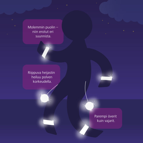 Lisätietoa heijastimen käytöstä ja sen vaikutuksista liikenneturvallisuuteen löydät Liikenneturvan sivuilta.